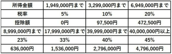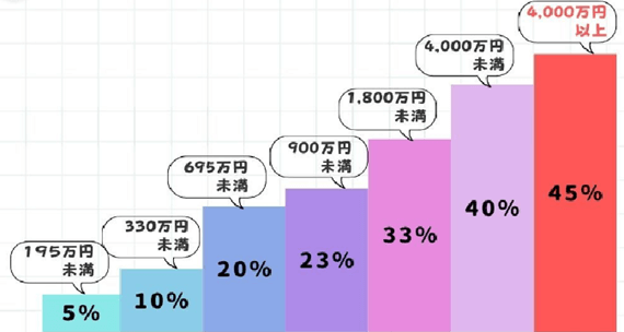 所得税の税率は、所得金額に応じて、次のような税率が適用されます。